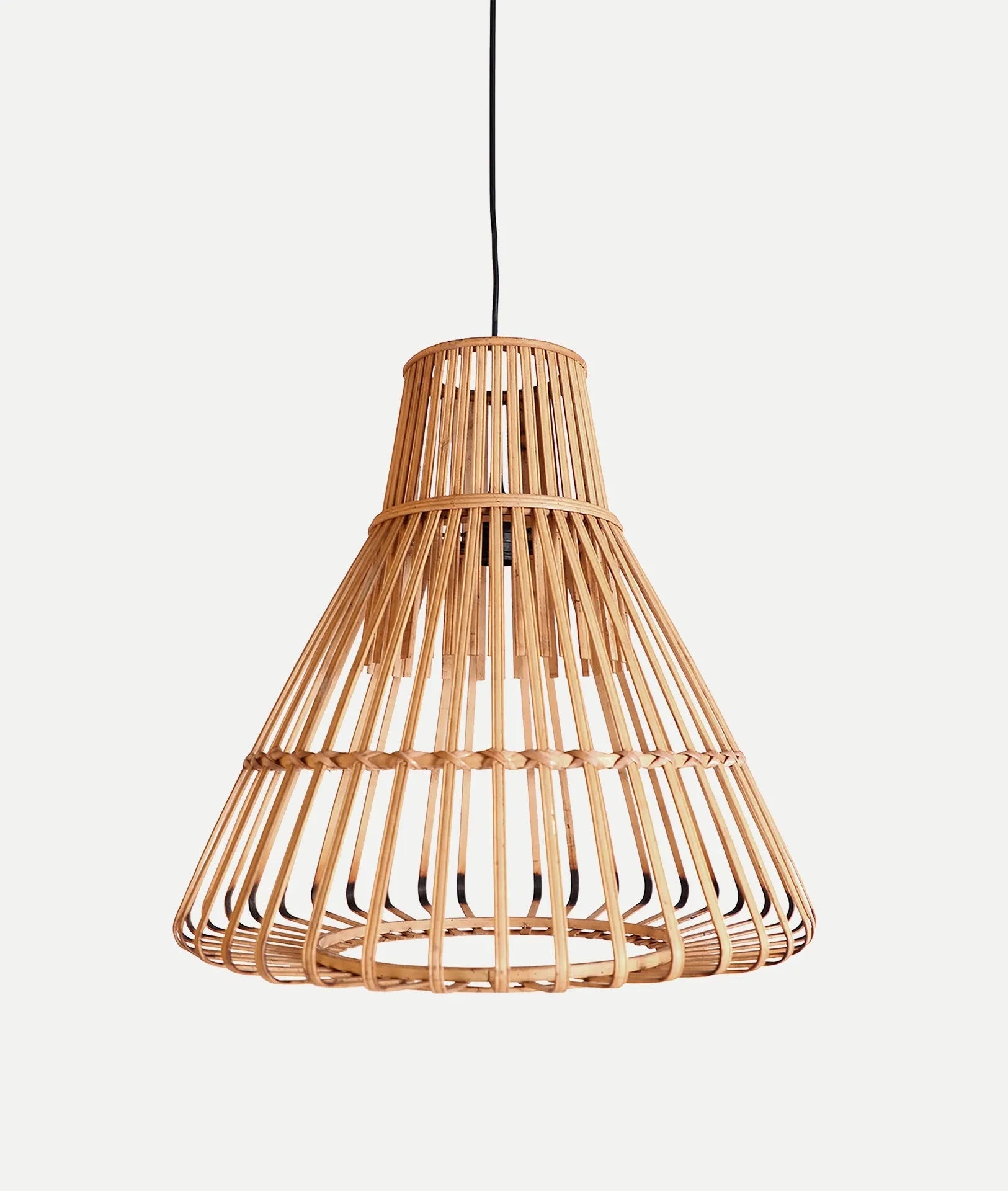 With an original and handcrafted design, the Arteaga ceiling lamp features a curved structure crafted from fine bamboo canes, providing a natural and inviting touch. It's an ideal decorative piece for creating warm and charming environments.