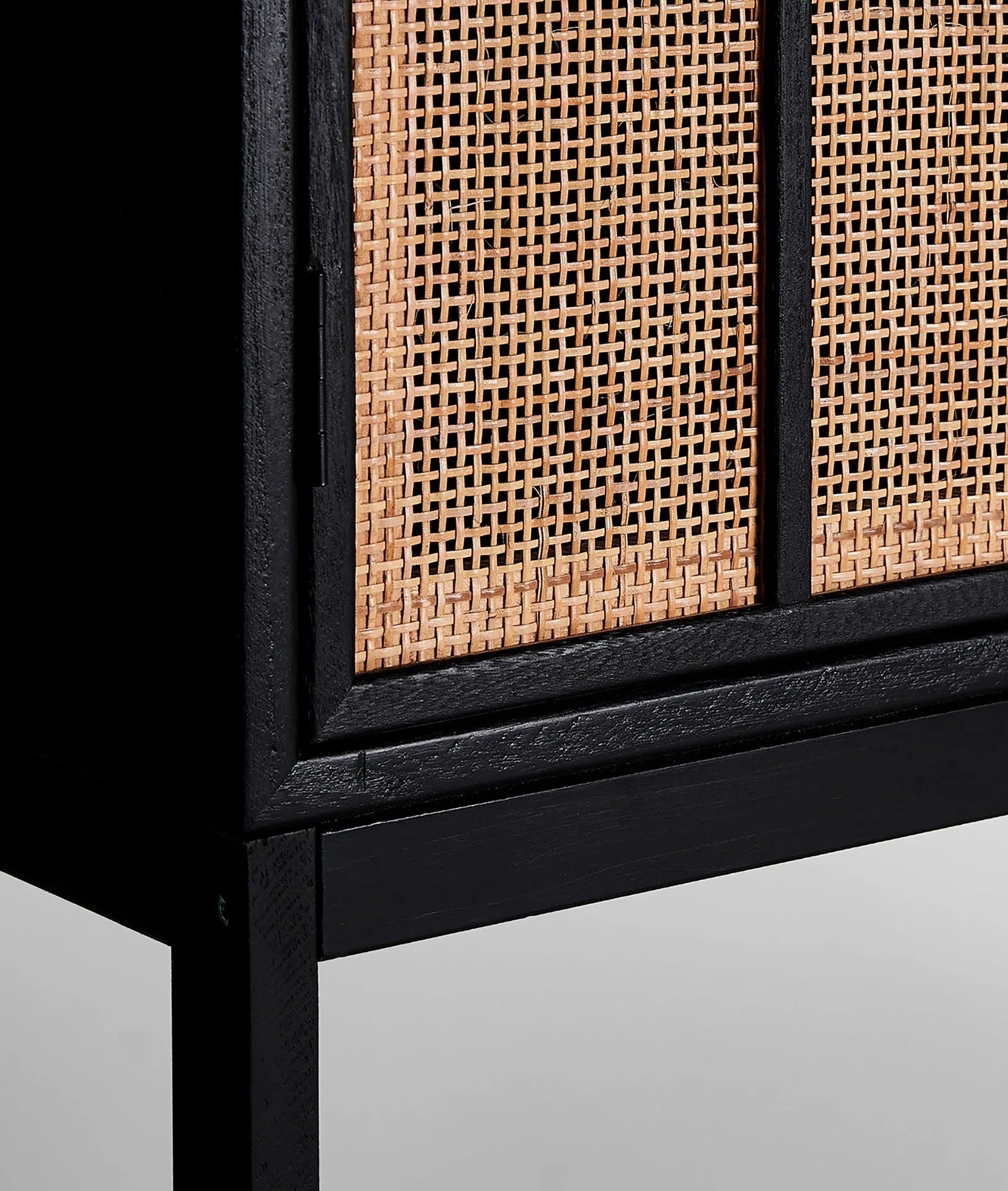 BLACK PINE WOOD COMBINED WITH NATURAL MDF AND LIGHT BROWN RATTAN