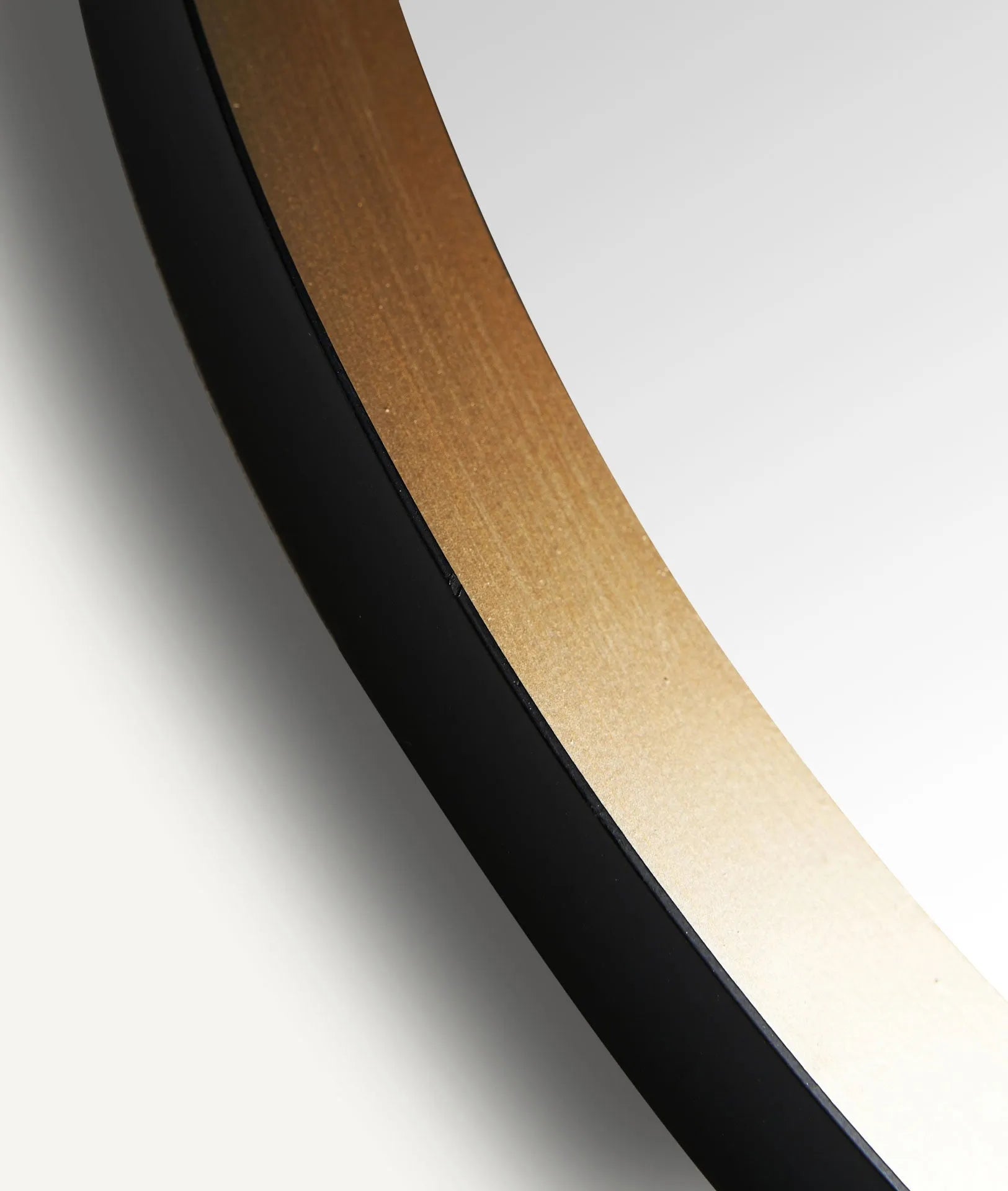Jacou round mirror in art deco style made of gold-plated iron combined with MDF wood and mirror.