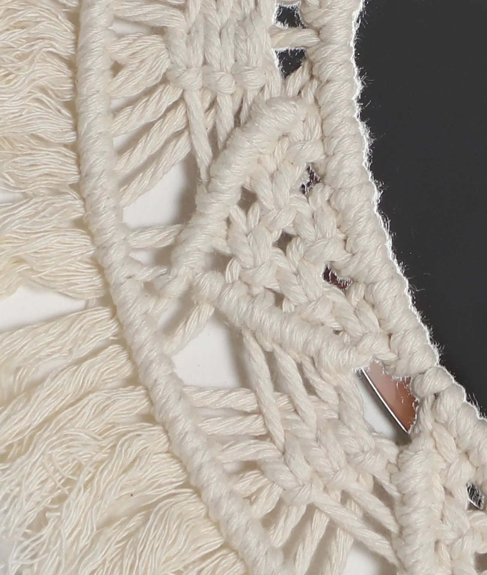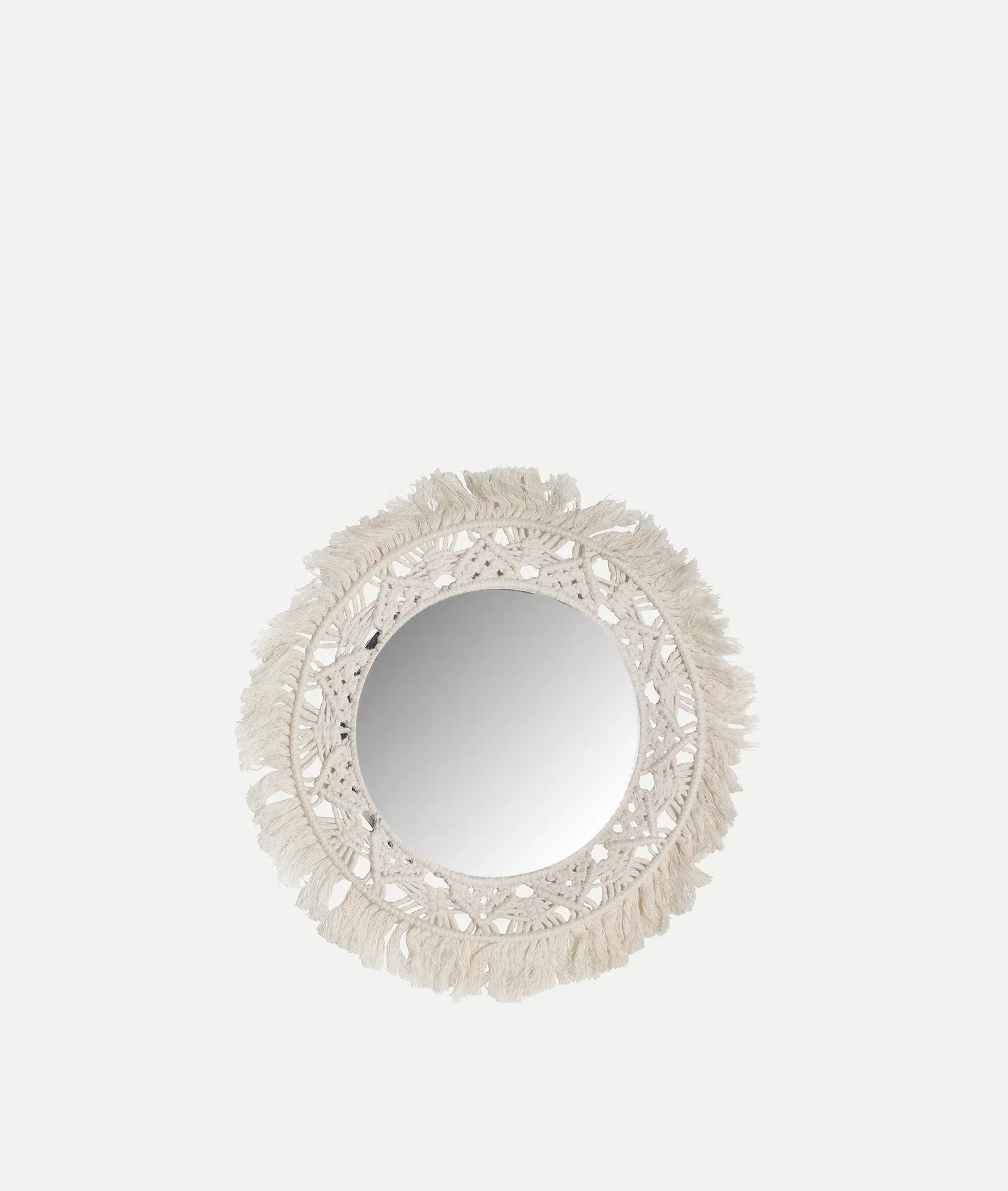 Shabby chic style round mirror made of white rope combined with plastic