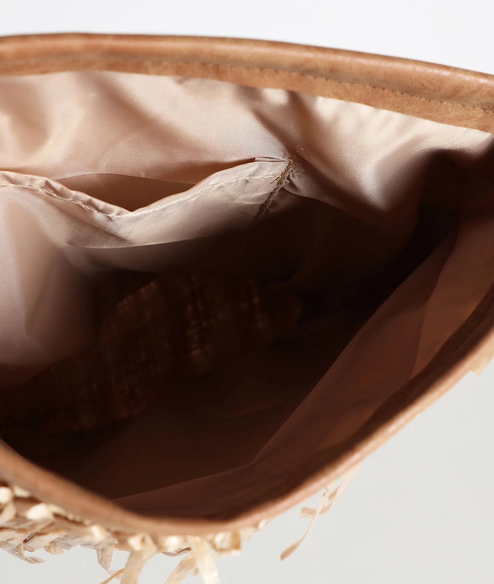 Square boho-style bhuv bag made of natural fiber in brown combined with raffia and polyester