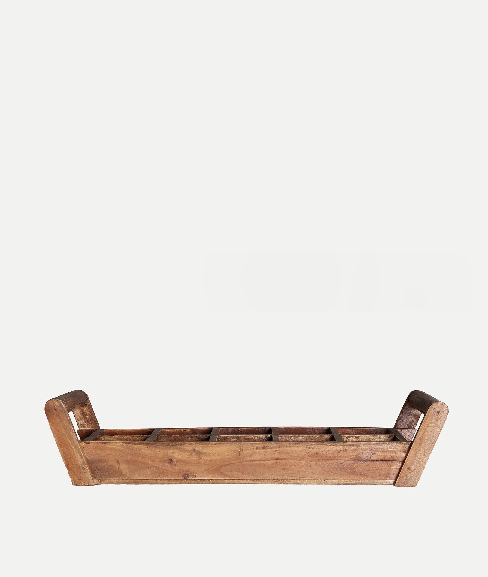 Rectangular Akviran ethnic style tray pot made of mahogany wood in brown with an antique finish