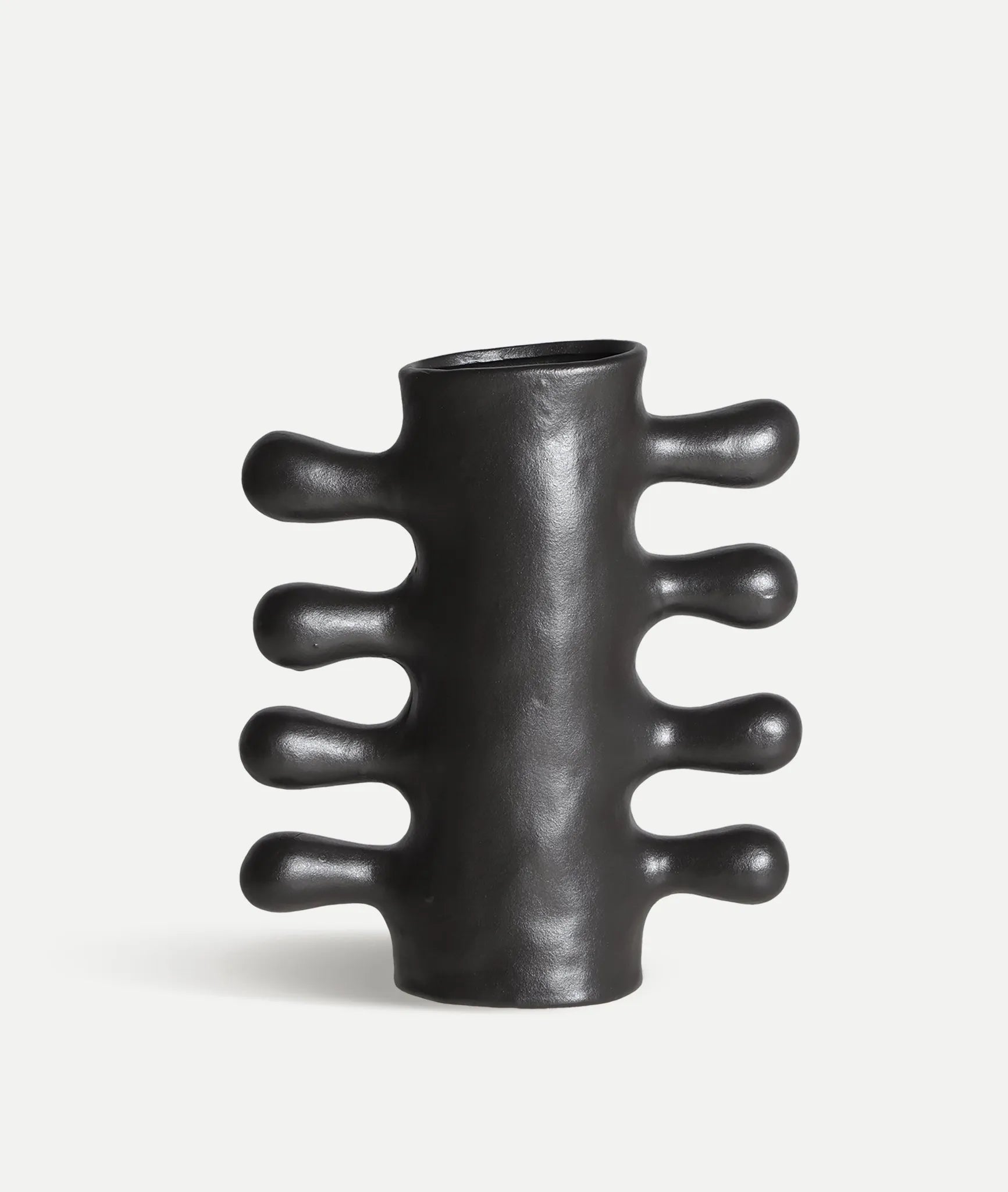 Irregular glessy vase in contemporary style made of black ceramic