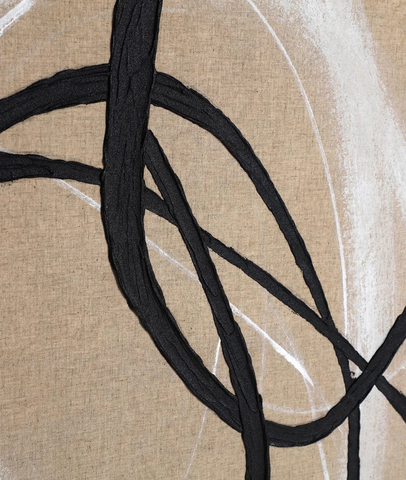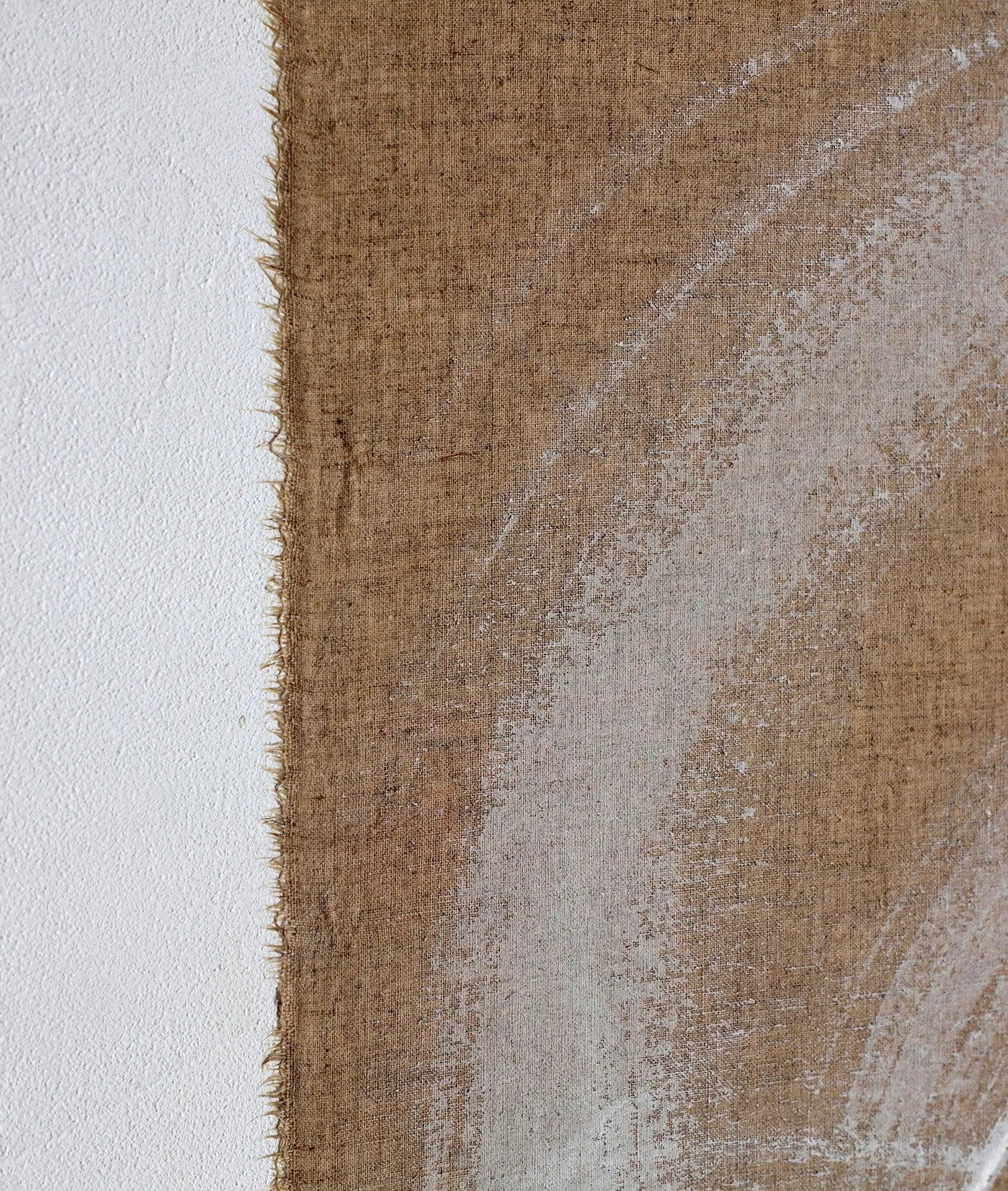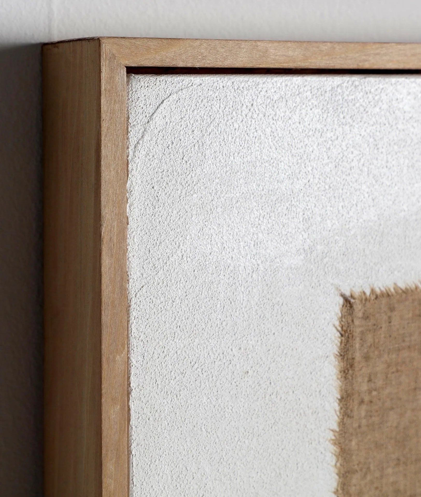 LIENZO EN COLOR BEIGE CON ACABADO ARTESANAL, COMBINADO CON MADERA DE PINO EN COLOR MARRÓN CLARO