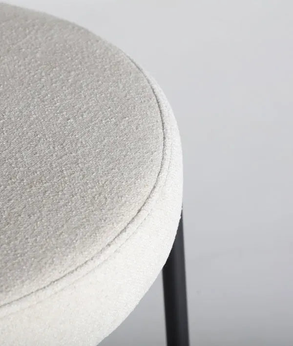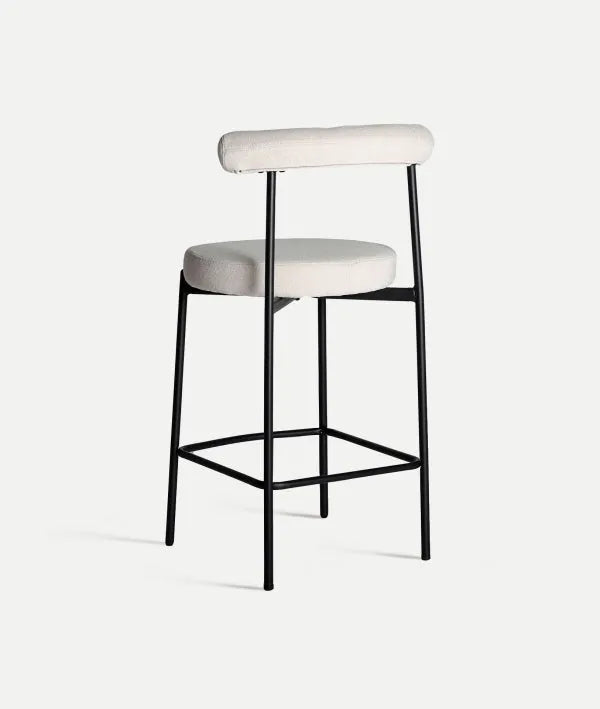 The beige upholstered bar stool (Note: the technical sheet indicates off-white) with a black iron frame is a piece of contemporary and minimalist design. Measuring 54 x 53 x 95 cm, it's perfect for the kitchen, bar, or dining room. Made of high-quality polyester, it ensures durability and a smooth finish. The black iron frame offers sturdy support and an elegant contrast with the upholstery. Its modern and functional design brings comfort and sophistication to any space.