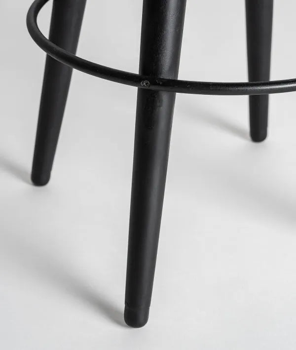 Black leather high stool (Note: Material color is brown) with a metal tripod base, measuring 42 x 42 x 74 cm. Its vintage industrial style stands out in modern bars or kitchens, providing a decorative and functional touch. The padded seat with decorative lines offers comfort and style. Perfect for bar areas, this stool combines elegance and stability, making it an ideal choice for those looking for a statement piece in their decor.