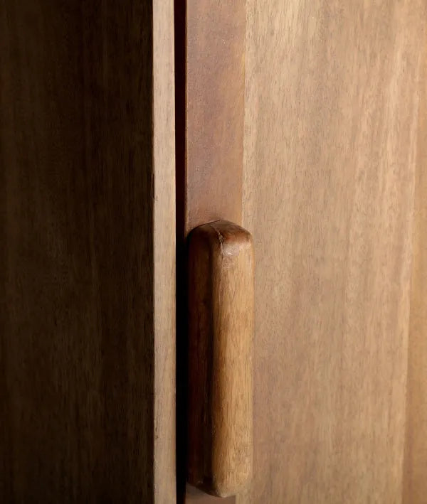 Add a touch of style to your home with this Nordic-style sideboard, crafted from brown mango wood, giving it a natural and warm aesthetic. With spacious shelves, it's perfect for storing dishes, linens, or other accessories, keeping your living room or dining room organized.