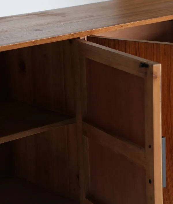 The LAURIS sideboard embodies the charm of Nordic style in a warm and natural design. Its brown fir wood structure is combined with plywood and matte black iron, creating a perfect balance between visual lightness and solidity. Ideal for spaces that emphasize functionality with a serene aesthetic.