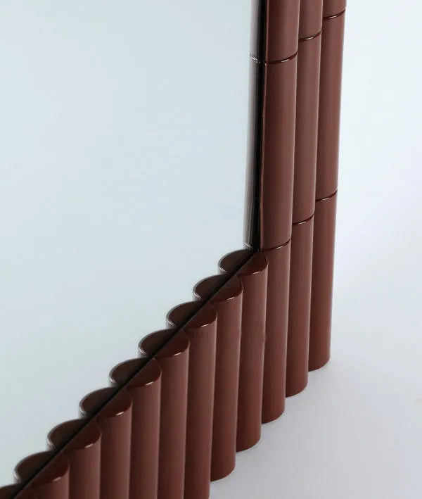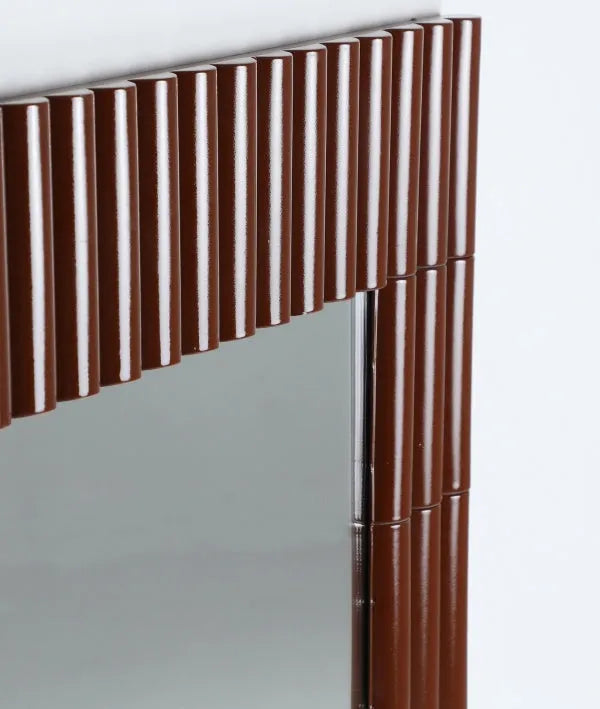 MENTON decorative mirror from the KODU collection. It stands out for its fluted iron frame with an elegant brown lacquer finish.