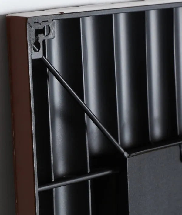 Corrugated iron with a brown and mirror lacquered finish.