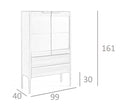 Tall walnut sideboard with marble-effect glass top and interior lighting