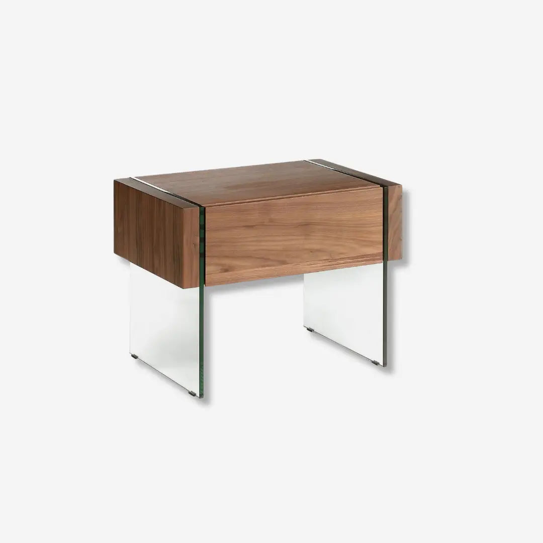 Walnut and tempered glass nightstand