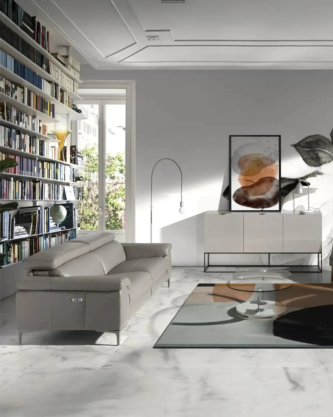 Ideal for contemporary living rooms. Pair it with dark metal or natural wood side tables and neutral-toned rugs to create a cozy and distinguished atmosphere.