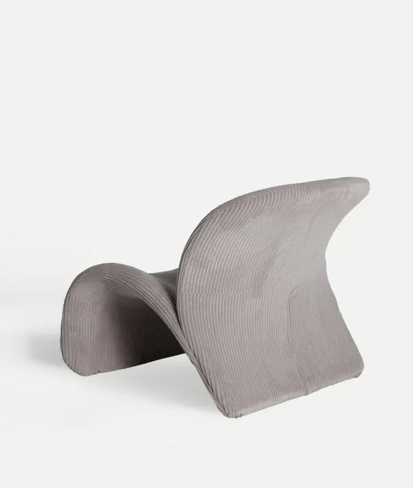 SILLÓN VIANNE gris en poliéster estilo Art Deco moderno con líneas curvas y textura acanalada