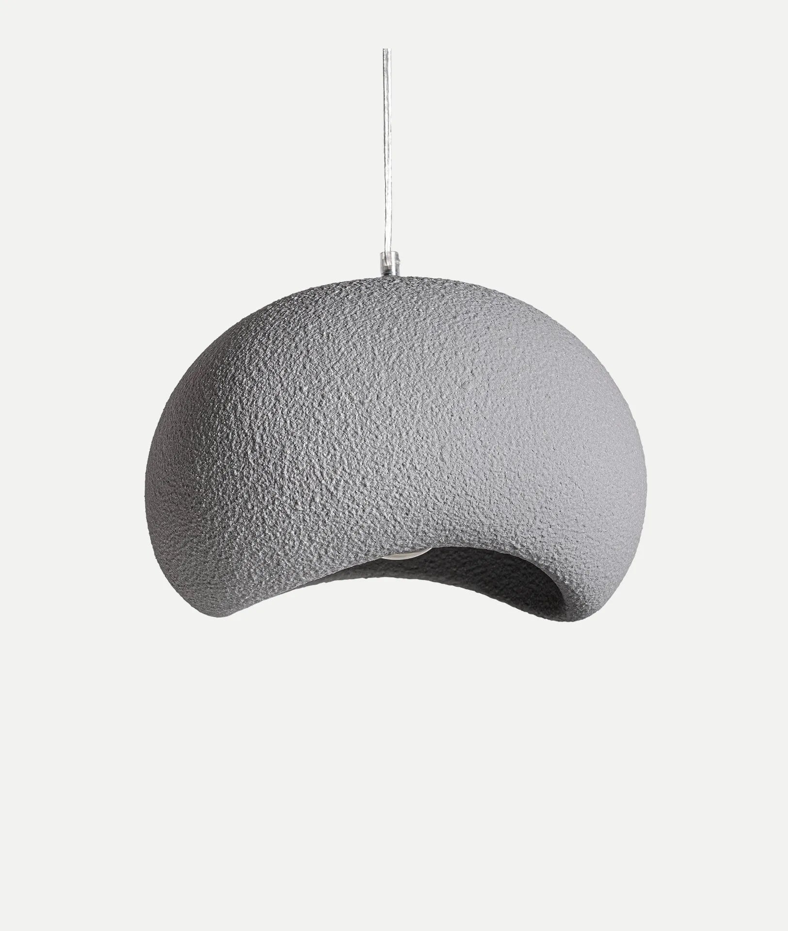 La lámpara colgante Tavira combina un diseño orgánico con un acabado en cemento de resina gris, transmitiendo una elegancia contemporánea y sutil.