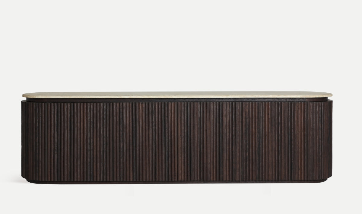 MUEBLE DE TV VERONA en madera oscura y mármol sintético
