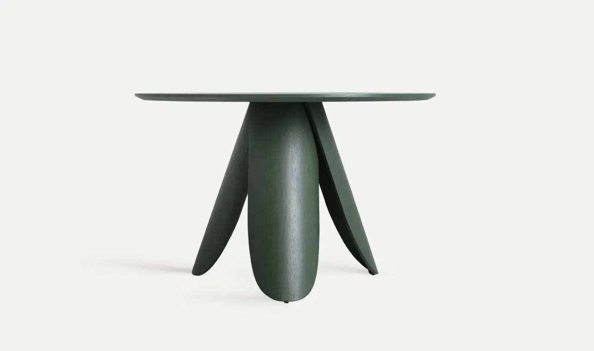 Madera de Fresno en color verde con acabado mate. Diseño Escultural/Contemporáneo.