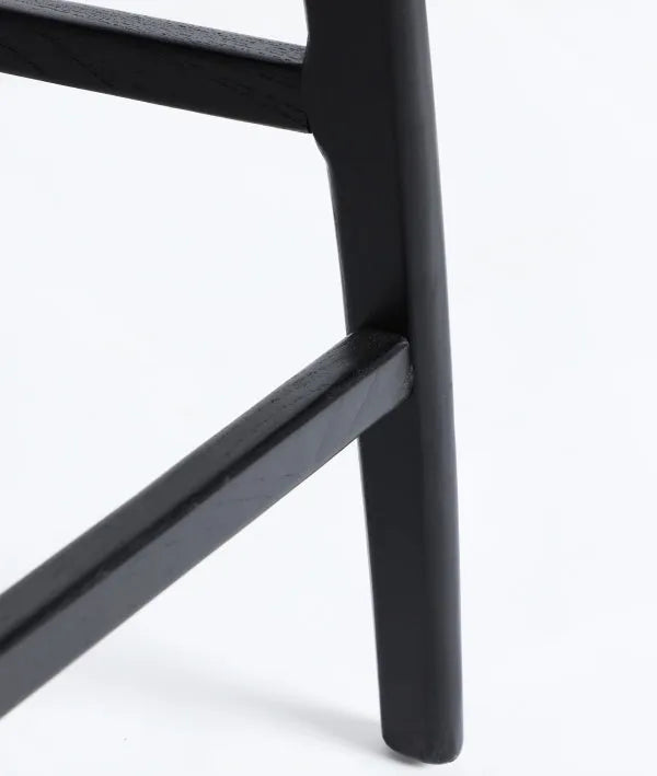 Fabricado en Madera de Olmo con acabado en color Negro, garantiza durabilidad y estabilidad. Cuenta con respaldo y reposapiés para un mayor confort.