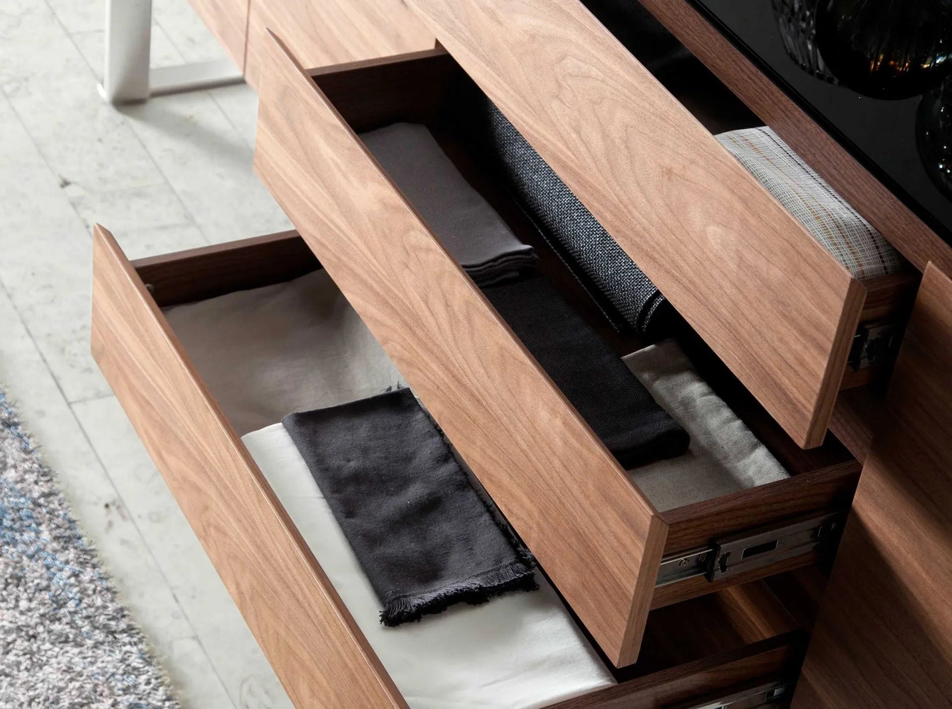 - Material del interior de los cajones: Madera chapada en nogal natural de 0,5 mm de espesor