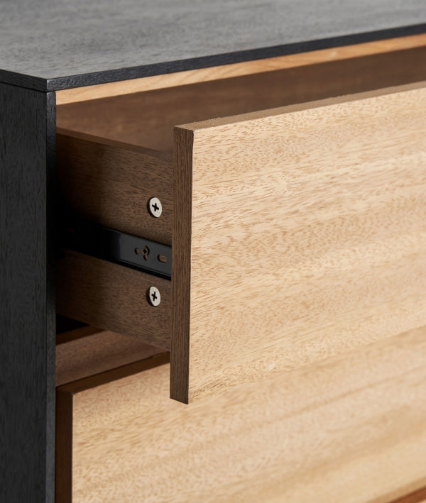 CÓMODA BRUSSA de estilo contemporáneo con acabado natural y estructura negra
