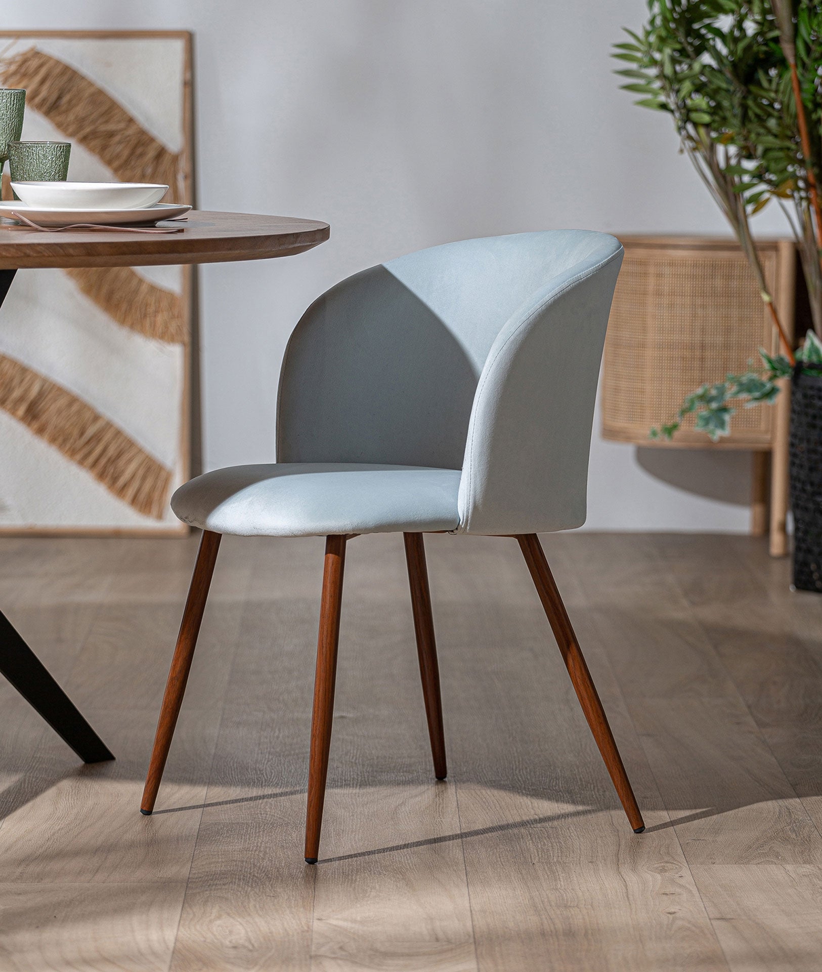 Silla LULA patas de madera tapizado azul claro