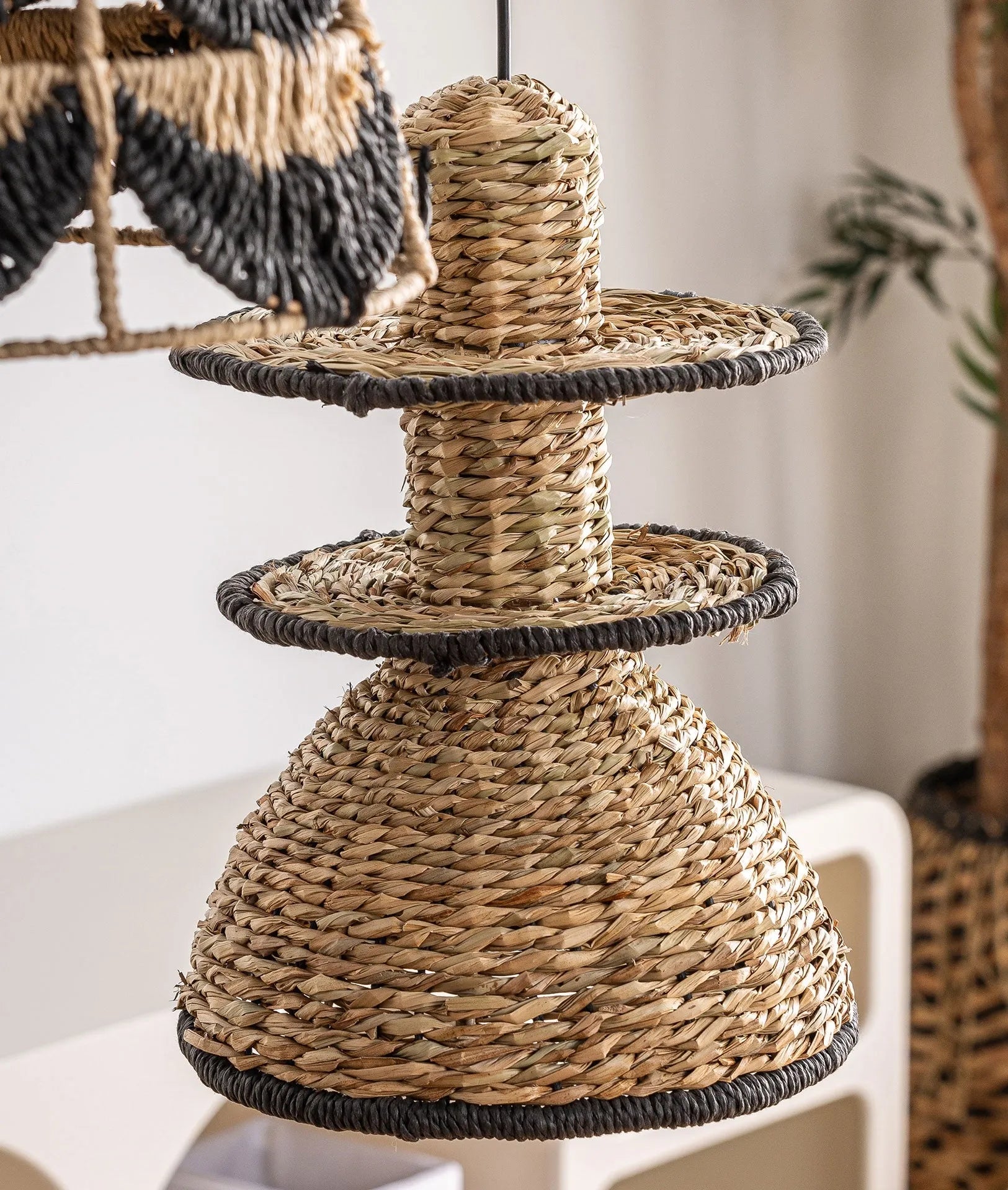 Lámpara de techo de fibra natural a mano negro y madera, KASSES