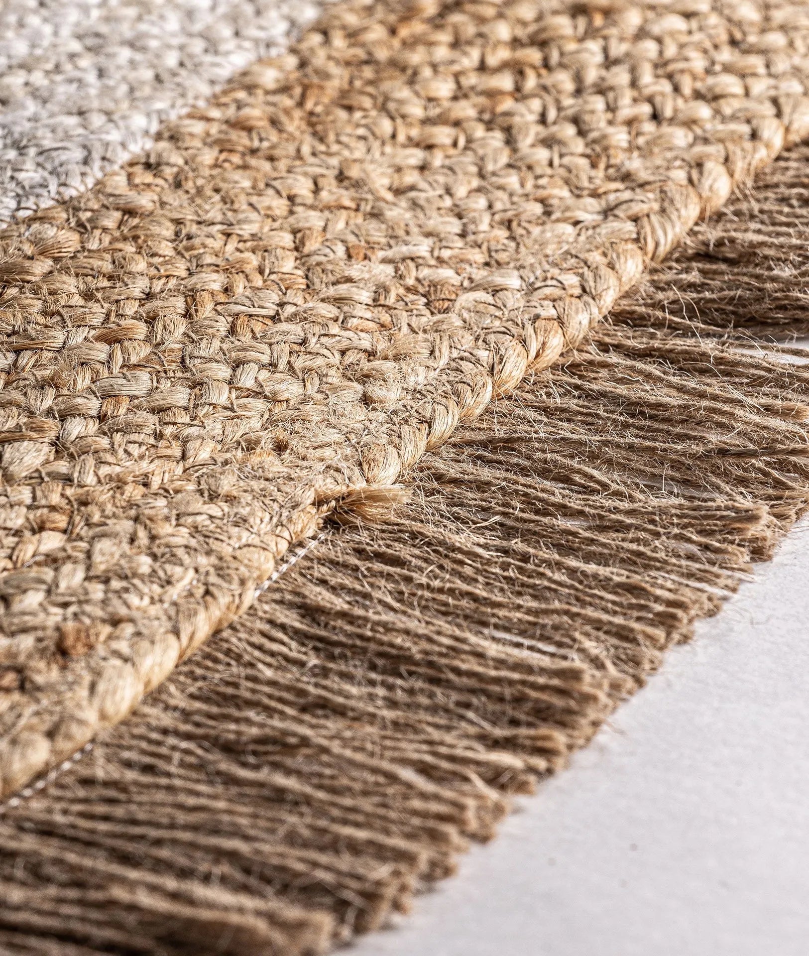 Alfombra redonda ela estilo boho hecha de yute en tonos marrones. En un formato redondo de 220x220x1cm, la Alfombra de Yute de Kodu es un elemento versátil para cualquier hogar. En un tono neutral, con circulos claros y oscuros y flecos, esta pieza es ideal para áreas de alto tráfico o simplemente para añadir un toque de textura y calidez a cualquier habitación. La durabilidad del yute combinada con la estética sofisticada de Kodu hacen de esta alfombra una elección inmejorable.