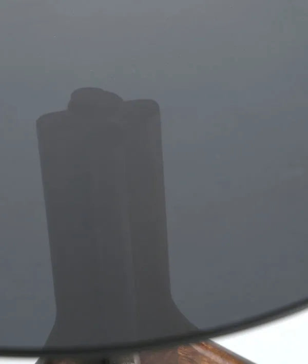 MADERA DE MANGO EN COLOR NEGRO, COMBINADO CON CRISTAL EN COLOR MARRÓN