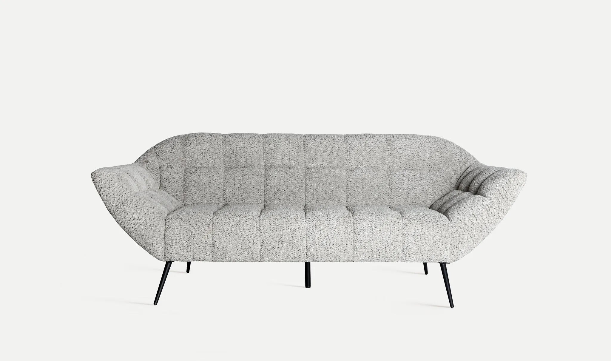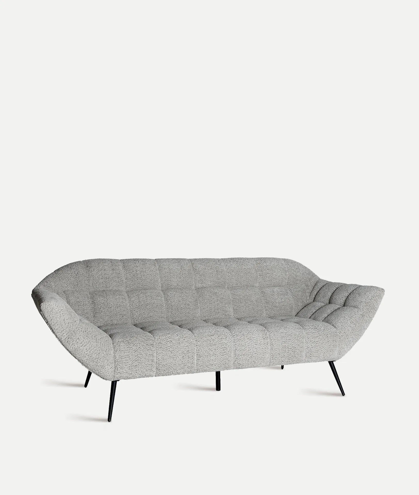 Sofá de 3 plazas con medidas de 221x85x86 cm, tapizado en un sofisticado gris claro. Su diseño moderno con líneas curvas y acolchado envolvente combina confort y estilo, mientras que las patas metálicas negras aportan un toque contemporáneo y estabilidad. Ideal para salones modernos o espacios de oficina, este sofá está fabricado con materiales resistentes y de fácil mantenimiento. Una pieza que une estética y funcionalidad para transformar cualquier ambiente con elegancia.