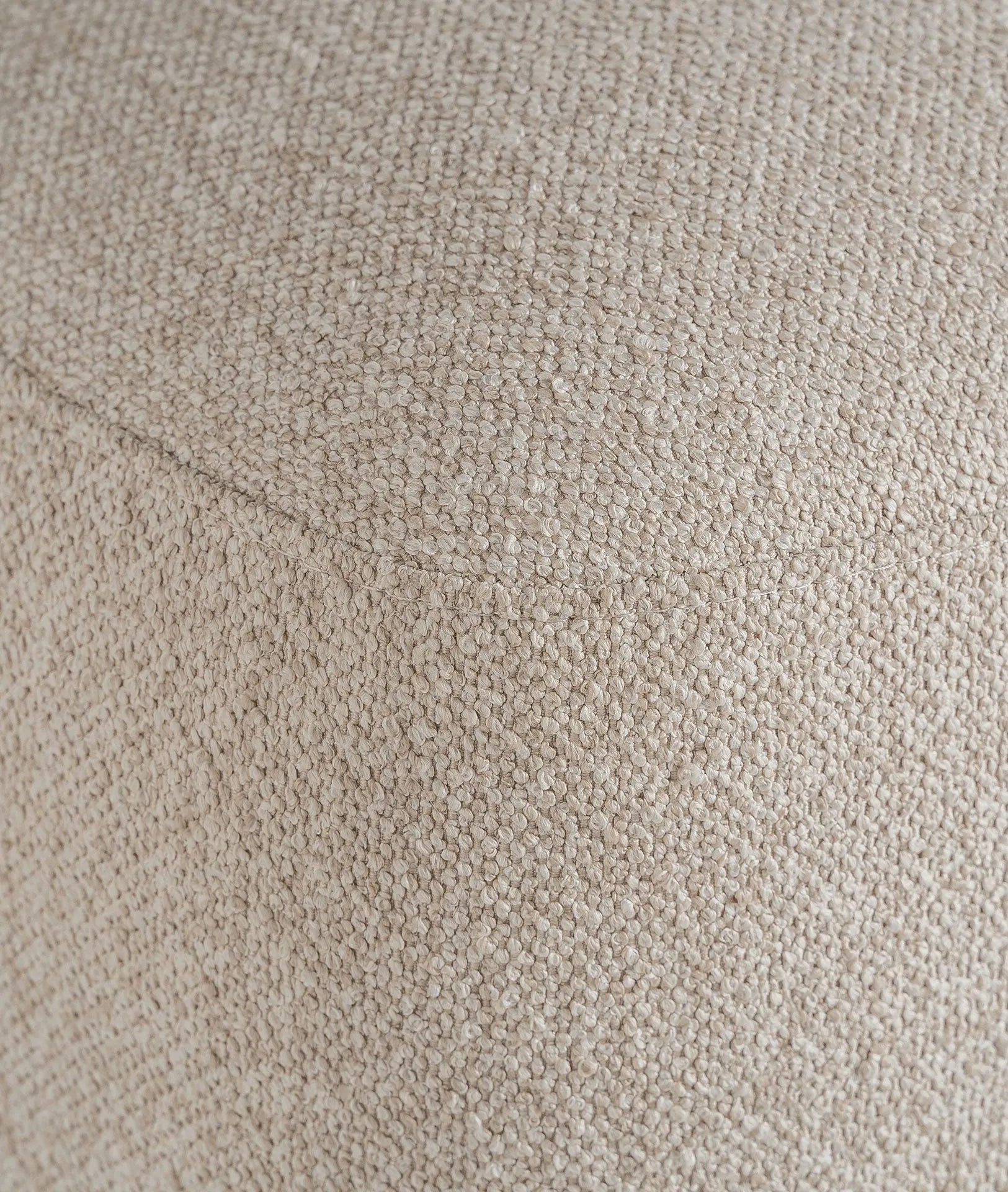 Módulo de sofá esquinero Ceyrat en estilo art déco, tapizado en poliéster crema con acabado marmoleado y apoyado sobre contrachapado marrón en acabado natural.
