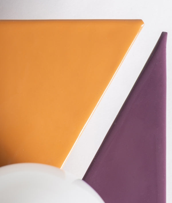 Mulberry-colored iron combined with white glass. Modern geometric style.