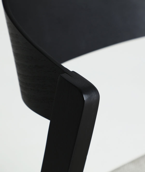 Está fabricada en Madera de Haya (Beech Wood) en color Negro, y el asiento está tapizado en Poliéster Gris.