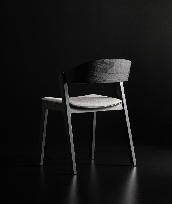 SILLA BORKEN MADERA COLOR NEGRO Y TAPIZADA GRIS