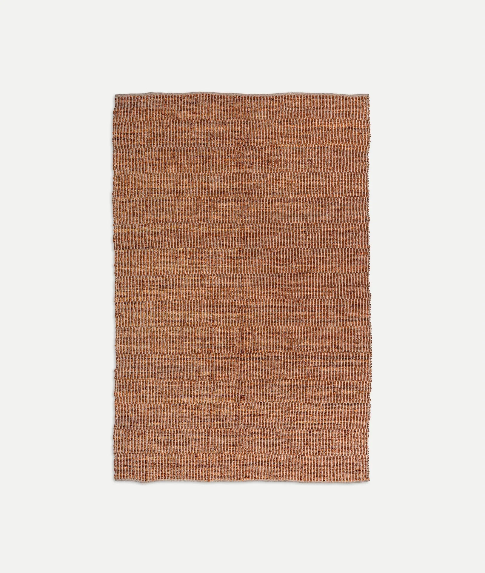 Alfombra Kalhid de estilo boho fabricada en yute color marrón. Su diseño natural aporta calidez y autenticidad, ideal para interiores que buscan un aire relajado y con personalidad.