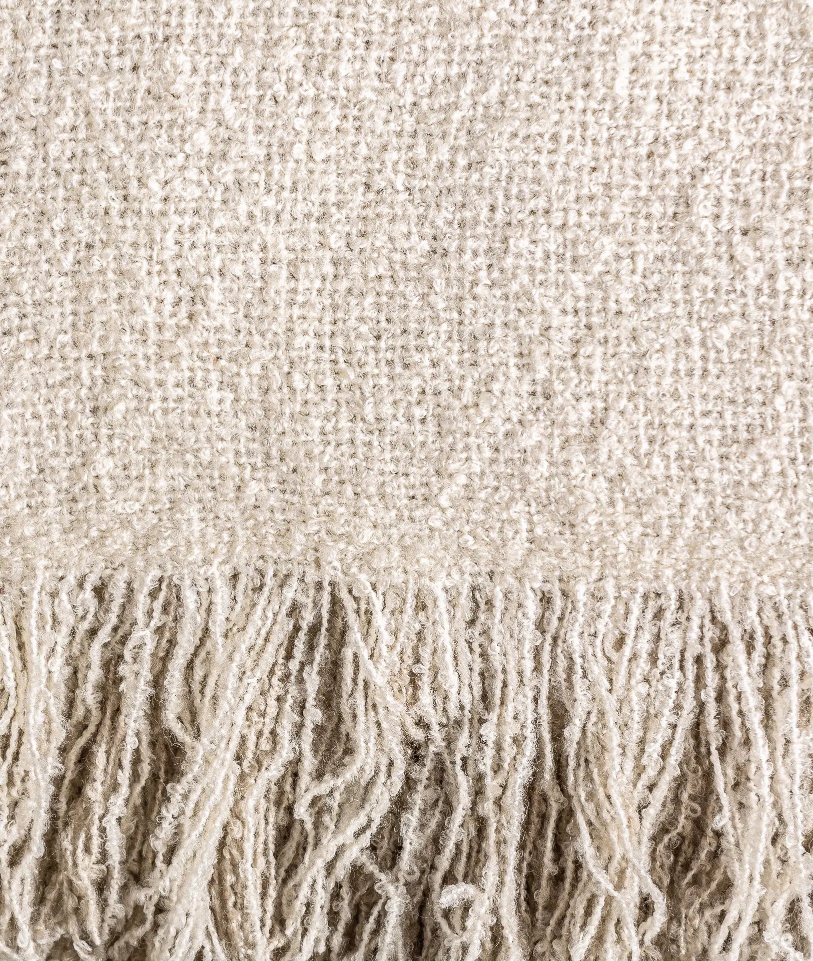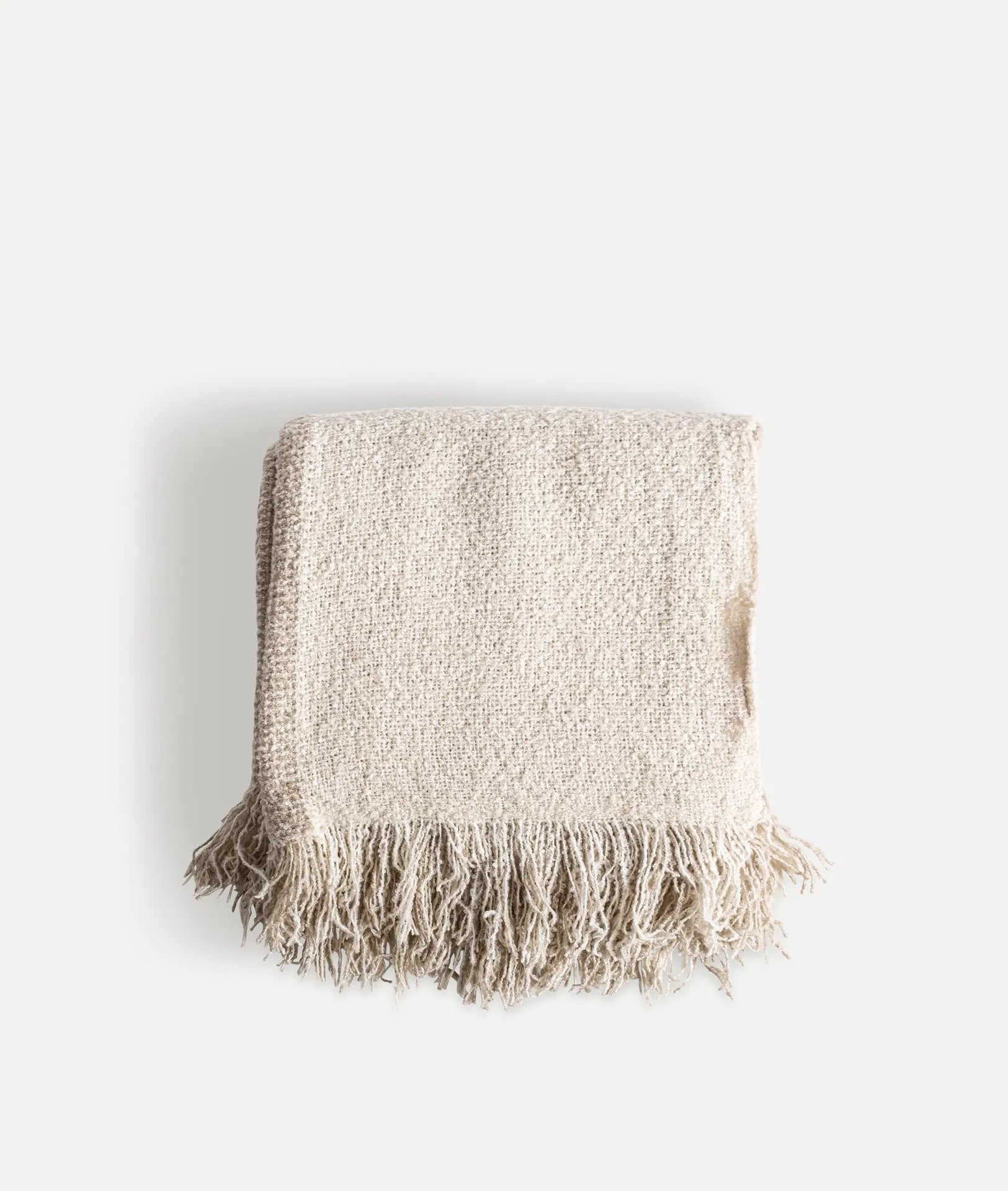 Su textura suave al tacto y su color beige neutro aportan calidez inmediata a cualquier espacio sin competir con el diseño existente. El acrílico asegura que la manta mantenga su apariencia y tacto a lo largo del tiempo, ideal para un uso diario en proyectos contract.