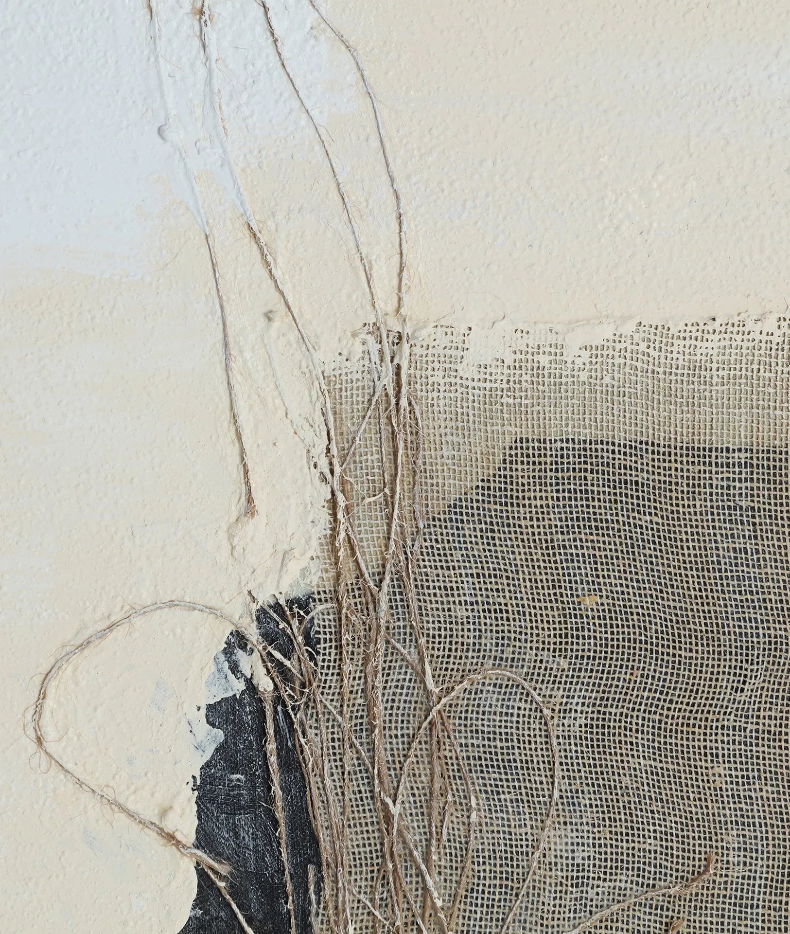 Lienzo en tonos neutros, combinado con poliestireno marrón.