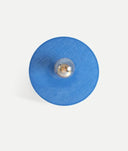 La estructura está fabricada en hierro de color azul, mientras que la pantalla es de algodón dorado. Es perfecta para añadir un toque de color y luz de acento en pasillos, dormitorios o salones con decoración moderna o Art Déco.