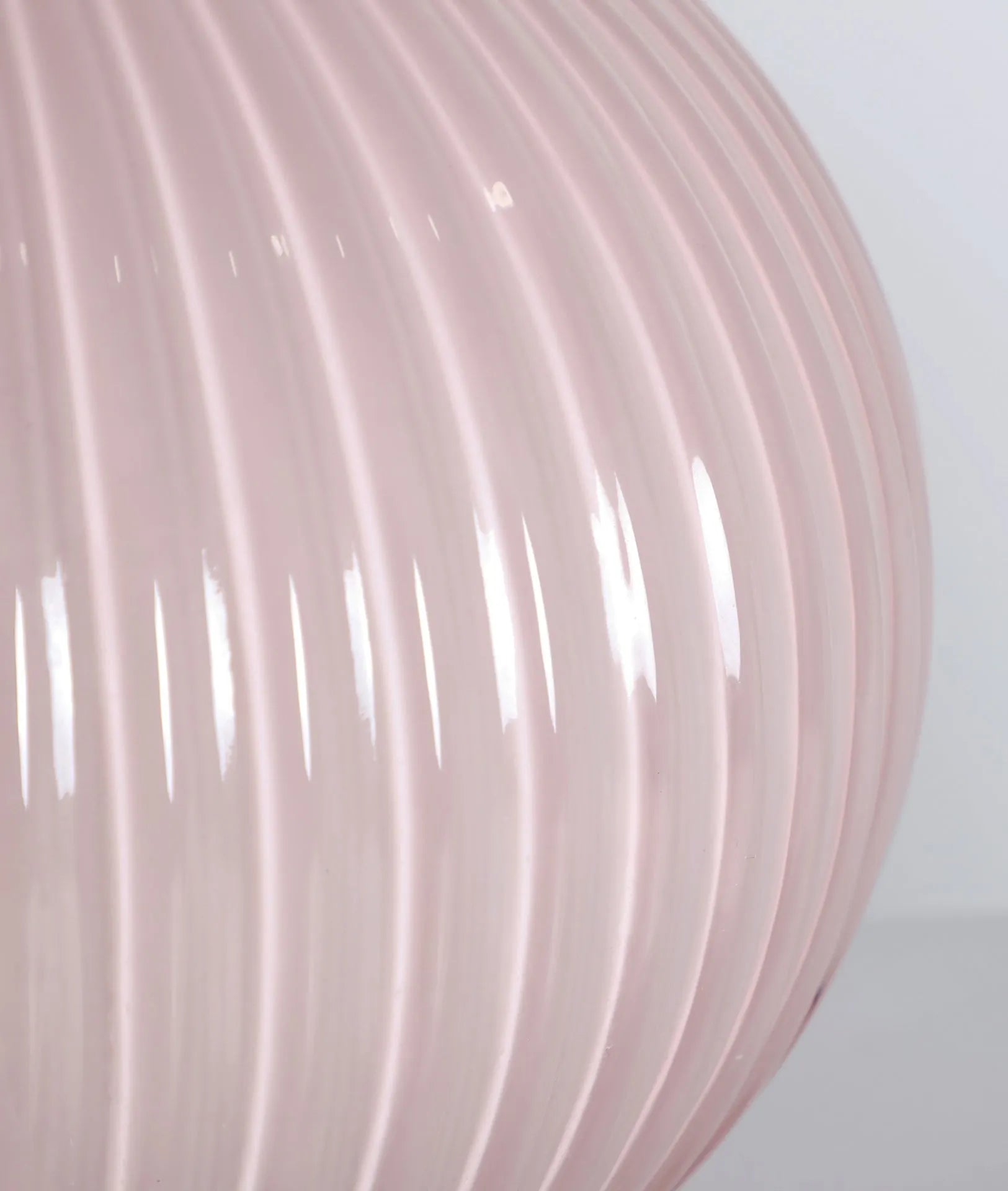 Fabricado en vidrio de color rosa palo con un estilo clásico y líneas armoniosas. Su acabado translúcido permite que la luz juegue con la pieza, aportando luminosidad y un ambiente cálido a la estancia.