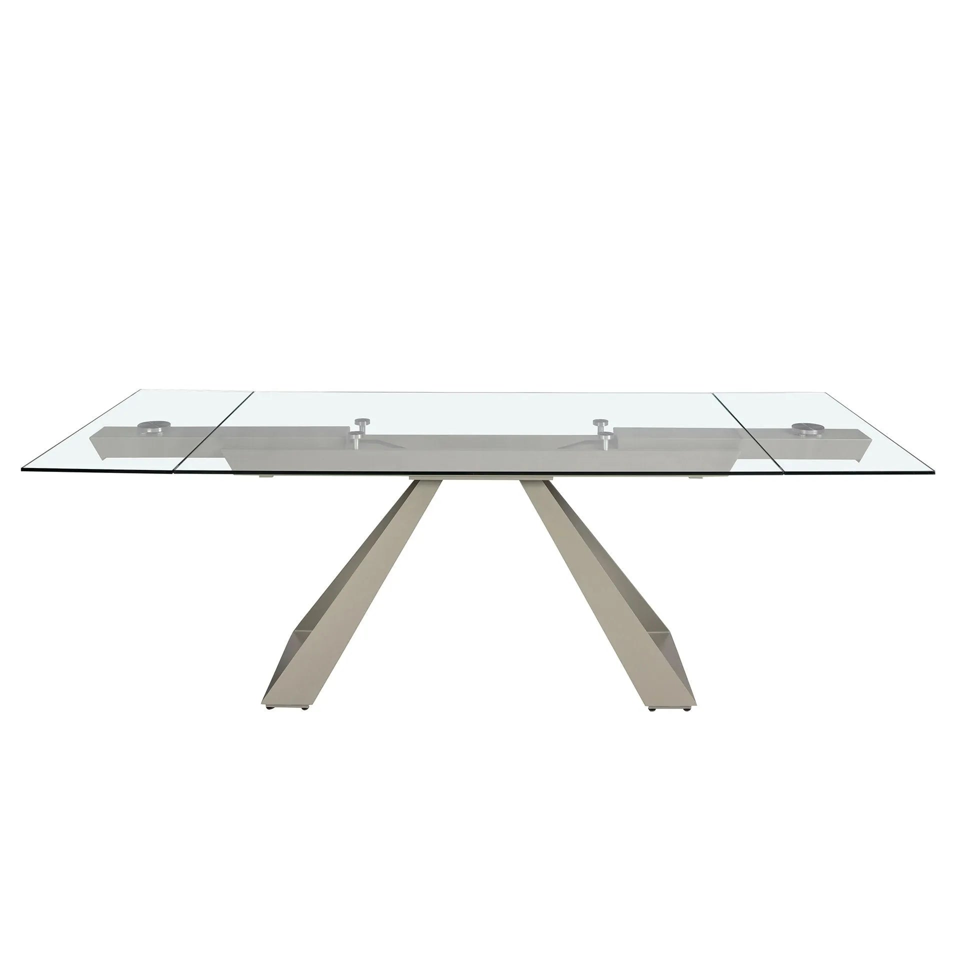 Mesa comedor extensible rectangular cristal templado y acero color champagne