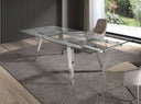 Mesa comedor extensible rectangular cristal templado y acero cromado