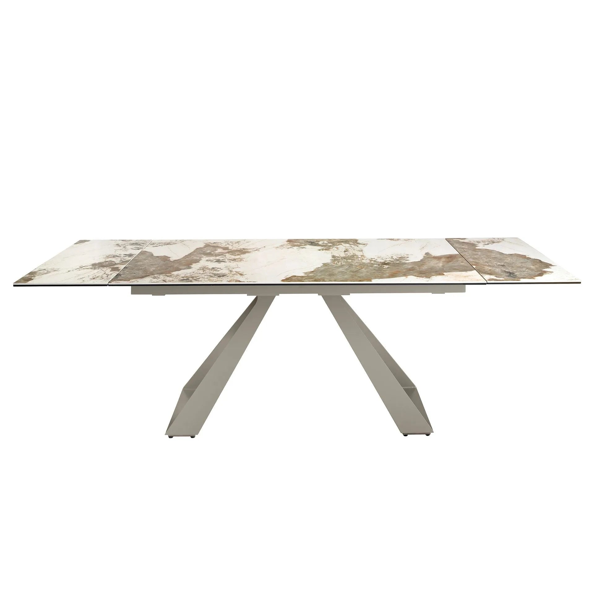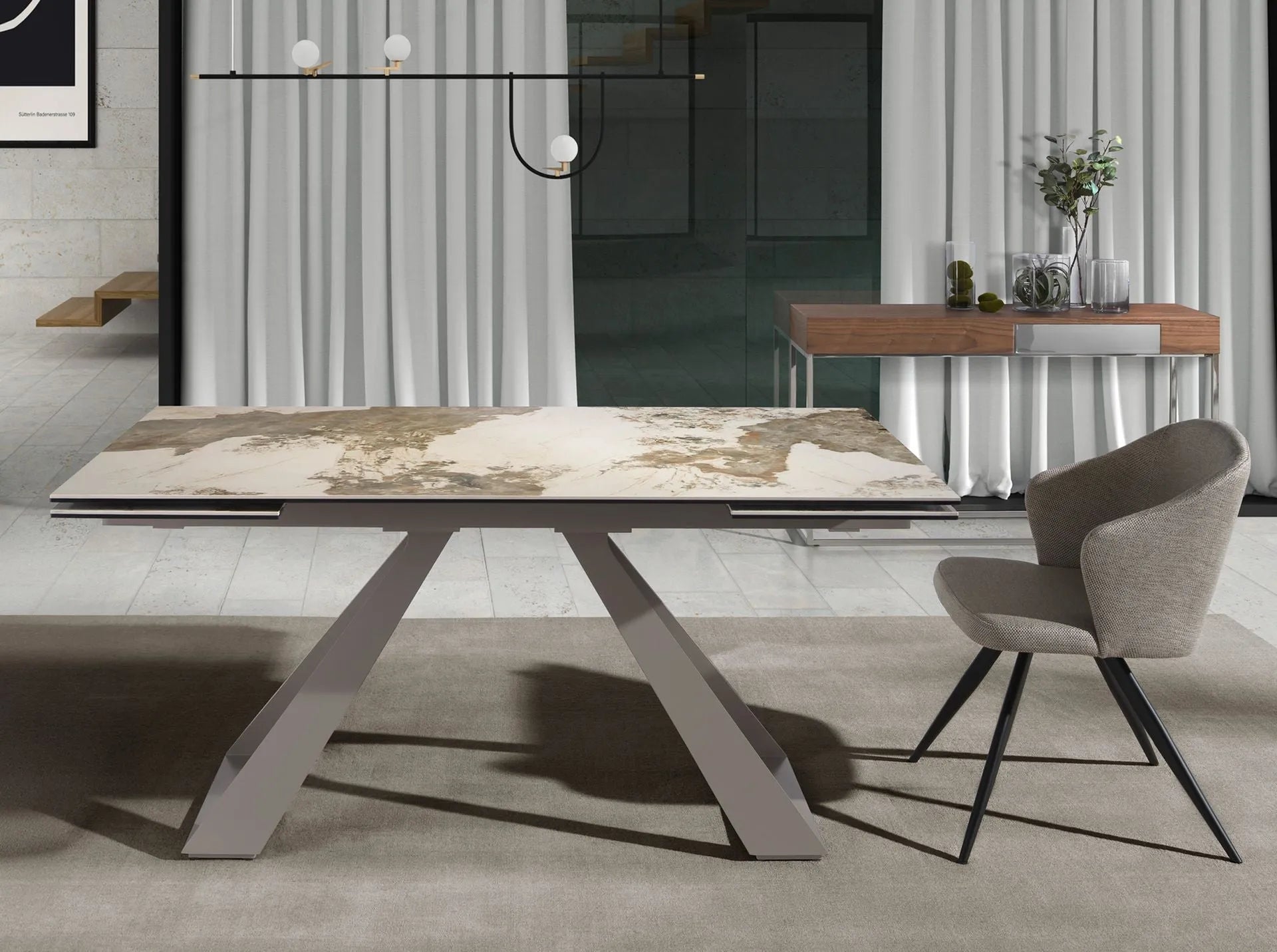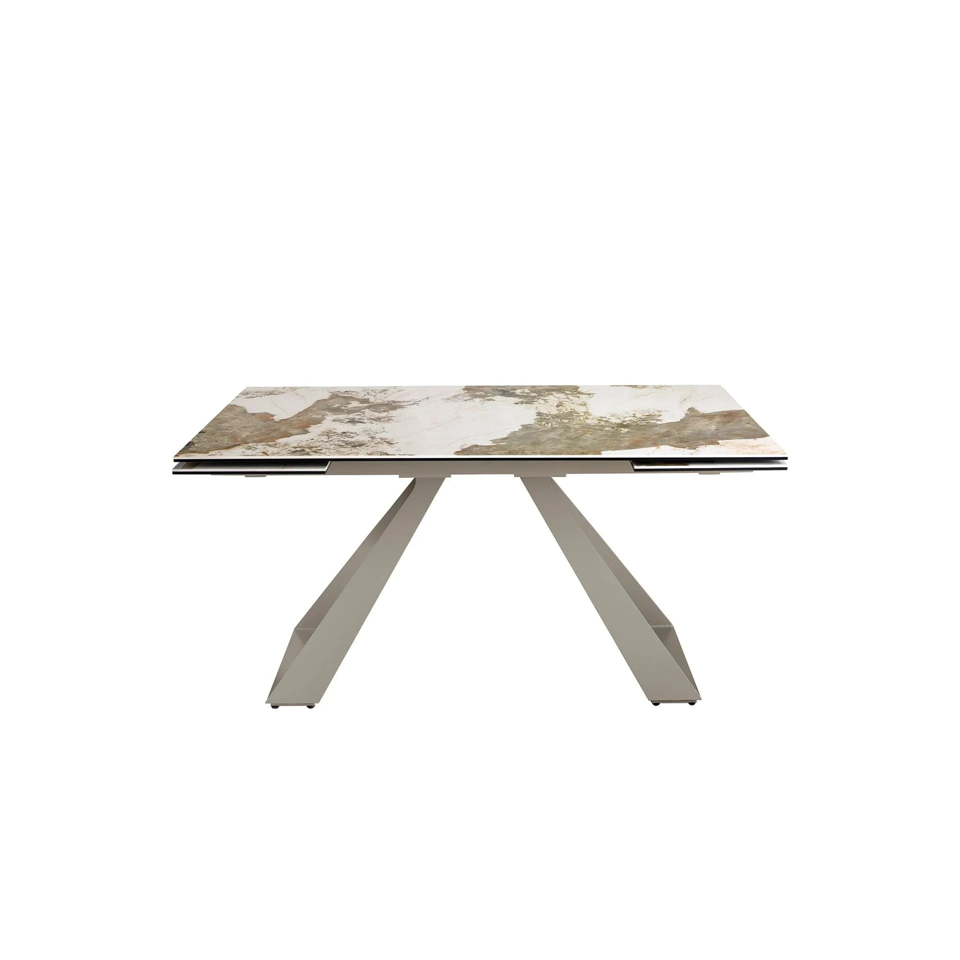 Mesa comedor extensible rectangular mármol porcelánico y acero color champagne