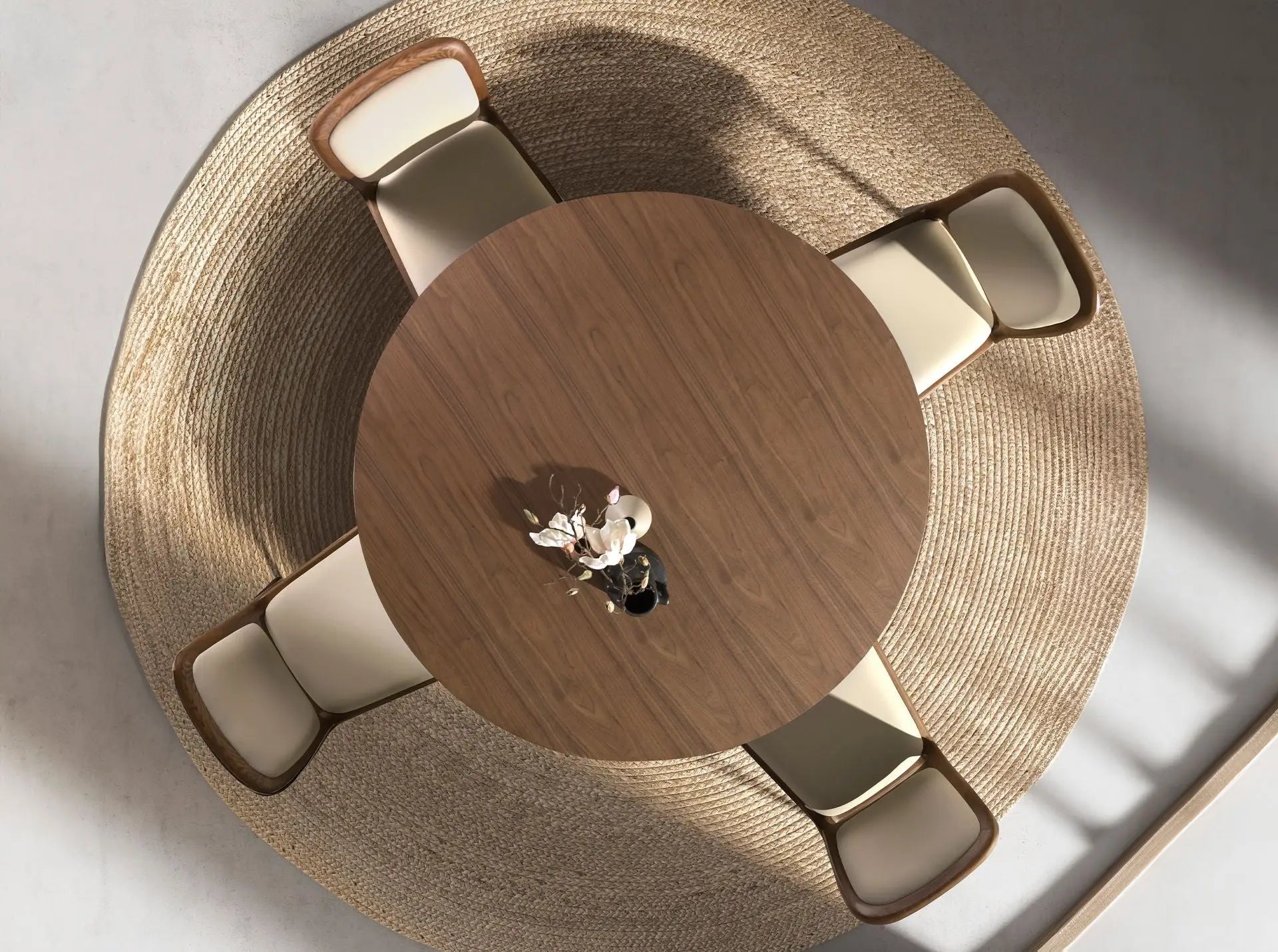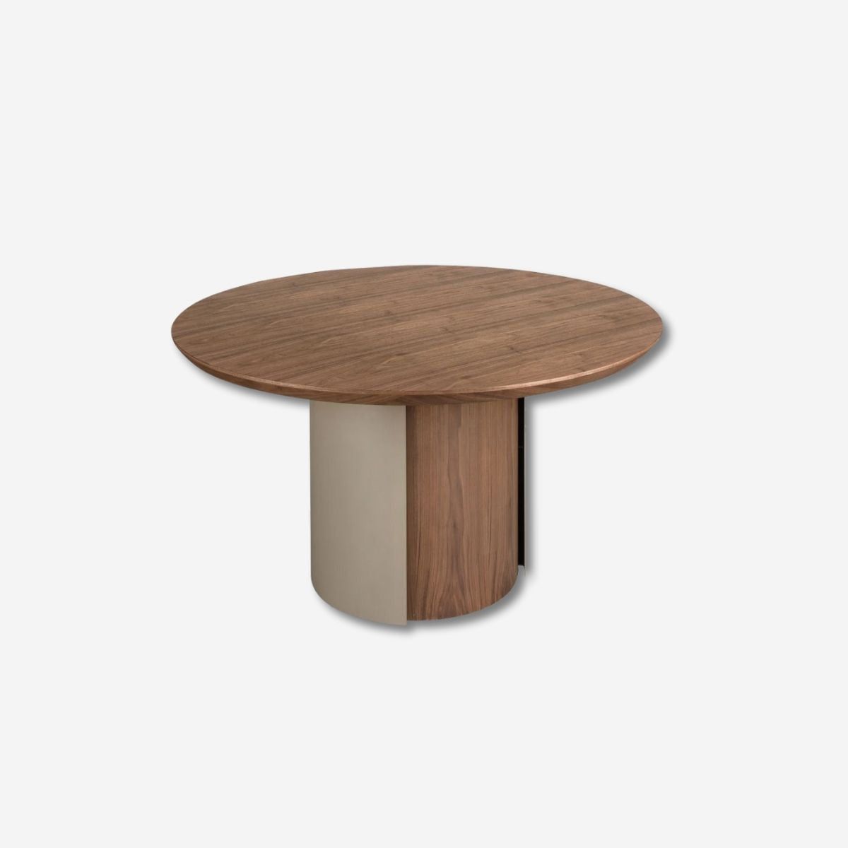 Color/material: mesa de comedor redonda en madera nogal chapada
