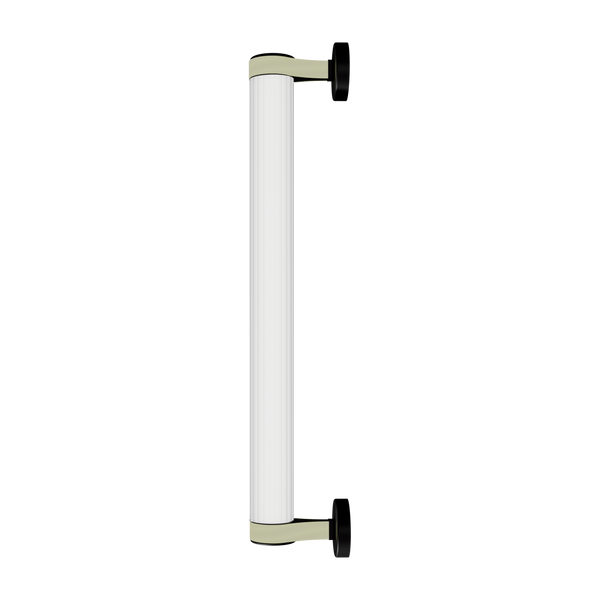 Roseline Wall Lamp 56 - Black base, beige strap and transparent glass shade.