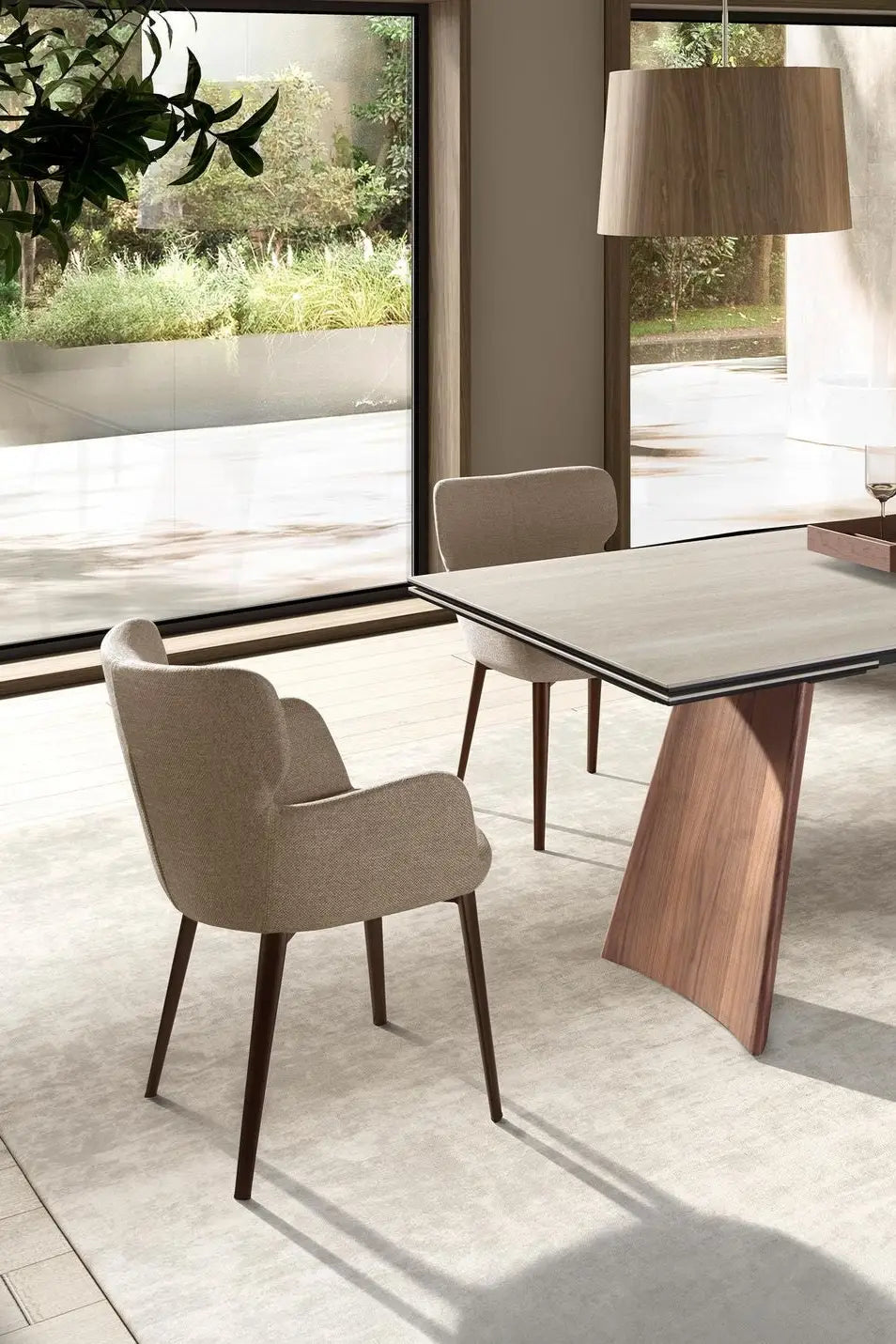 Combínala con mesas de madera natural y accesorios en tonos tierra o metálicos para crear un ambiente acogedor y contemporáneo.